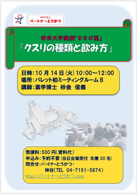 *東京理科大で長らく教鞭をとられました砂金信義先生の健康講座です。薬のことはもとより